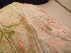 このピンクやオリーブ色の花柄部分、実はぽこぽこと凹凸があるプリントなんです!こんなの見たことない!