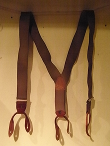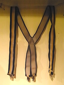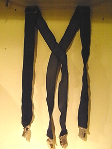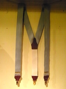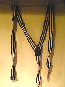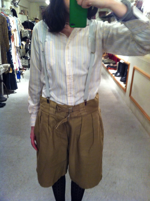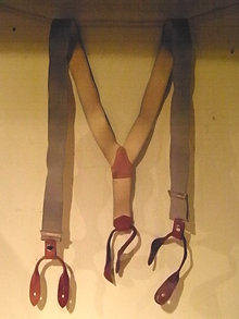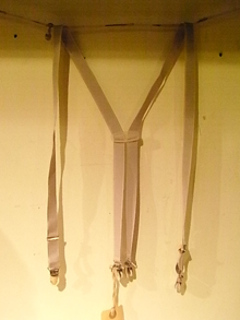 ●left 濃いベージュ色のボタン式サスペンダー。メンズライクなコーディネートにぴったり!