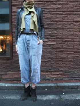 コンパクトな羽織とヒールのブーツでmixコーデを楽しむのもまた良し。