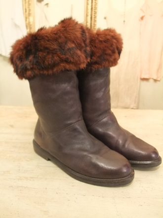 赤茶色のレザーにラビットファーのライナーが付いています*