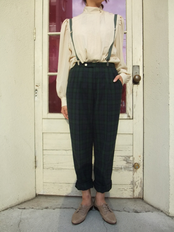ブラウスをインしてサスペンダーで吊るのもテッパンコーデ!