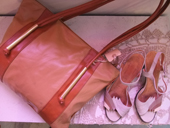 小物は茶系をセレクトして統一感を。