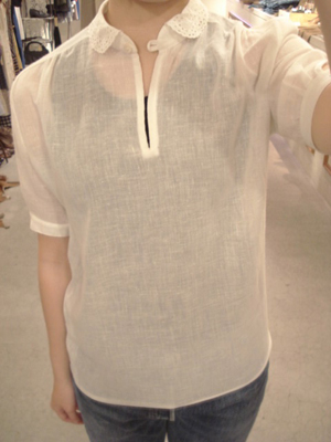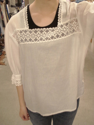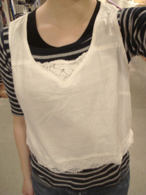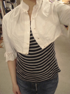 そして最後はこの子*気になるけれど、どう着こなして良いのか…なんて言葉が聞こえてきそうですが、こんな感じでカットソーに重ねたり、キャミワンピの羽織りとして着たりするととっても可愛いのです*ベアトップワンピに合わせるのも良いですよ♪