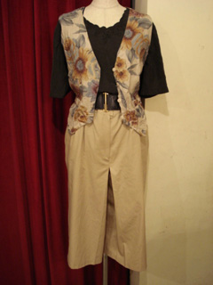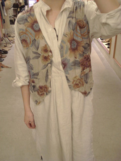 一癖あるお花柄のベストを合わせてポイントに!