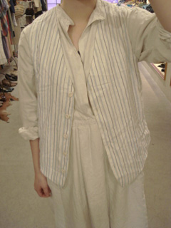 白地に青いストライプが爽やかなベスト。