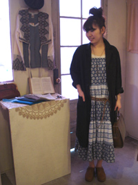 シンプルなコーディネートにはアンティークネックレスと細いベルトで味付け♪