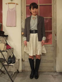 ゴムベルトとブーツの色を合わせてシャキッと引き締めて*やっぱり女の子はスカートですね〜