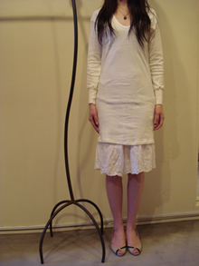 くしゅくしゅっと裾をたるませて着ても良し、伸ばしてワンピースとして着ても良し。