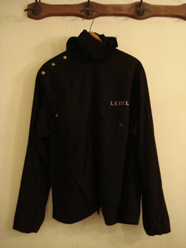 【1】右開きのデザインも珍しく、肩の金色のスナップボタンと左胸ポケットの上に捺されたスタンプがポイントです。