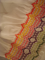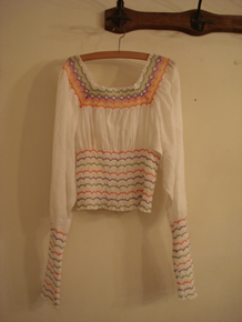 カラフルな刺繍が目を引くこちらはウエスト、腕部分にゴムが入っている変わり者。