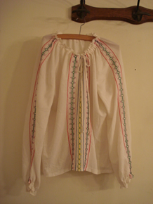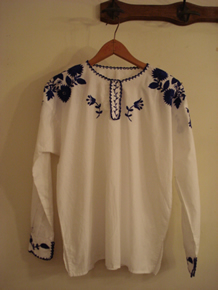 シンプルな形のシャツに青い刺繍がたまらない、よだれものな1枚。こんな刺繍もなかなか見掛けません!