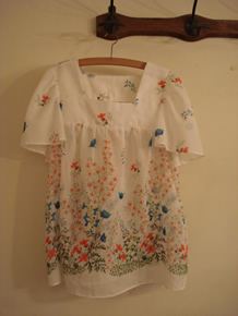 黄色のお花が可愛らしいこちらは、ウエスト部分に細い紐が通してあるのでお好みでシルエットを変えることが出来ます。