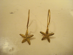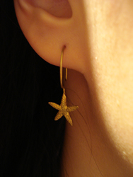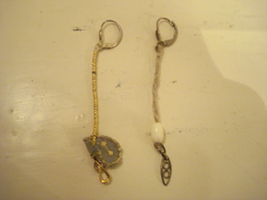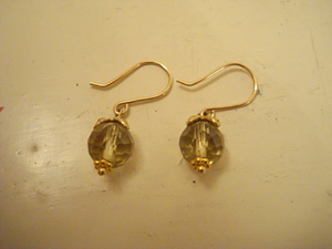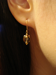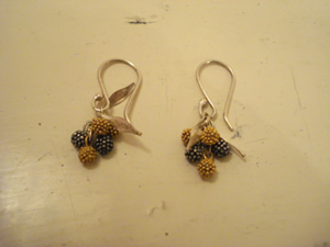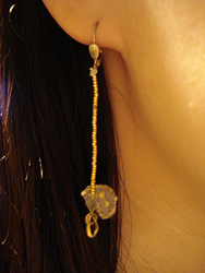 イエローゴールドと枯れたシルバーの粒々が付いた、華奢なピアス。
