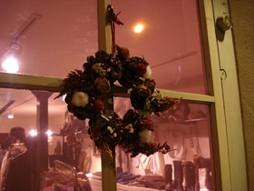 我がwow retroの窓、ドアもクリスマスに向けこんなことになっています。