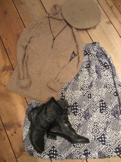 足元はブラックのレースアップブーツでクラシックな雰囲気に◎