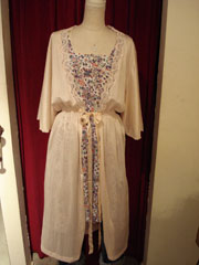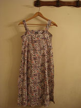 白地に総花柄のワンピ。お花の色が派手ではないので