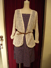 白の網ニットカーデにを合わせて