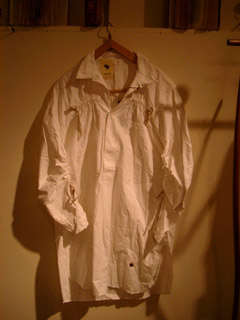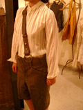 ビンテージのスウェーデンアーミーシャツをリネンのテープを使いリメイクされている。