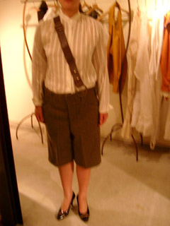 ワンストラップのサスペンダー代わりのアンティークベルトが付属されている。
