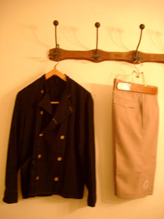 左は東ドイツ軍のメディカルコートをのコックシャツにリメイクしたもの。