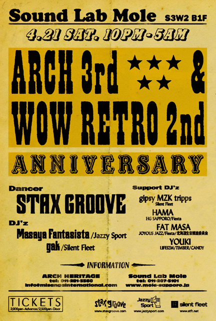 wow retro2周年、ARCH3周年のANIVERSARY PARTYです。