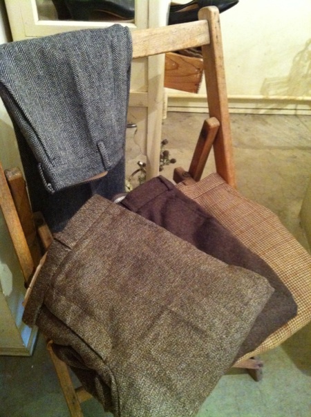 いつものコーディネートを程よく引き締めてくれるツイードのスーツパンツ。