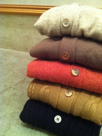 knitの暖かみに相反する軽い素材の物を合わせ
