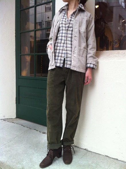 以前ご紹介したフランスのワークジャケットとネルシャツを合わせ