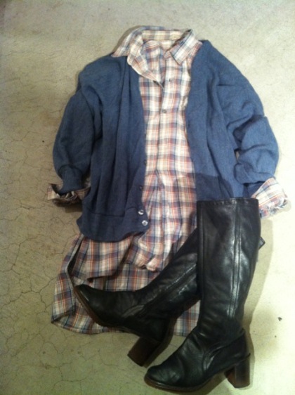 先日ご紹介のグランドファザーネルシャツやタイトなカットソーに羽織のがお勧めです。