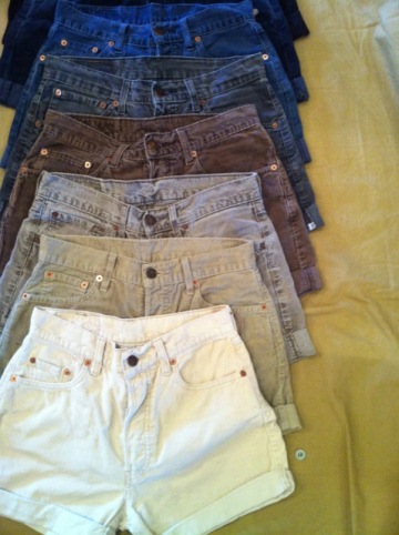 コーデュロイパンツをカットしたショートパンツが