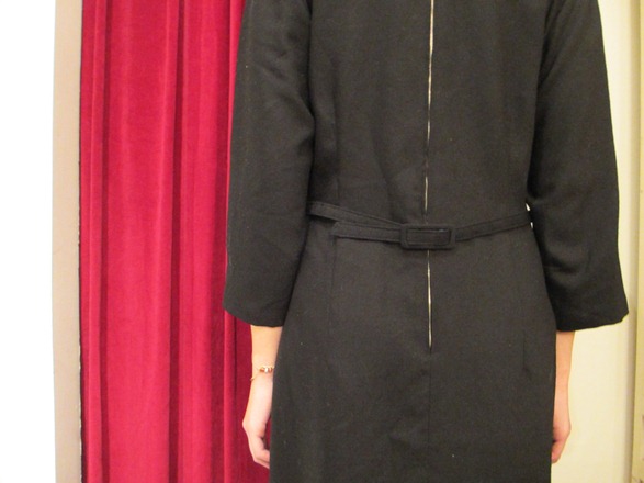 一見セットアップかのようにも見えるウール地のブラックドレス