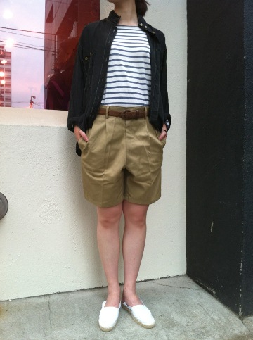 ミリタリーアイテムの魅力でもあるしっかりとした生地感が魅力のチノショーツ。
