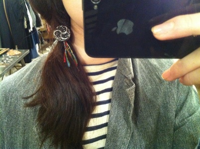 前回のブログにてご紹介しました、アンティークボタンのヘアゴム。