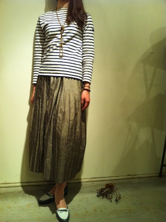 軽い素材のプリーツスカートは