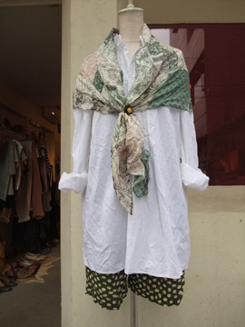 シルク素材のプリントスカーフを纏えばお洒落度更にアップ↑