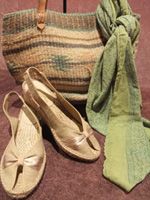 ウッドビーズがふんふだんに編み込まれたカゴバックに足元は鮮やかなCalzanorのTストラップサンダルを合わせて。お色はワンピースの首元の黄色い刺繍に合わせて黄色をチョイス♪