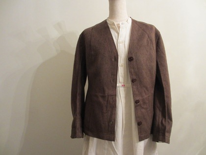 元来コートの中に着るジャケットとして開発されたものでノーカラー(襟なし)で