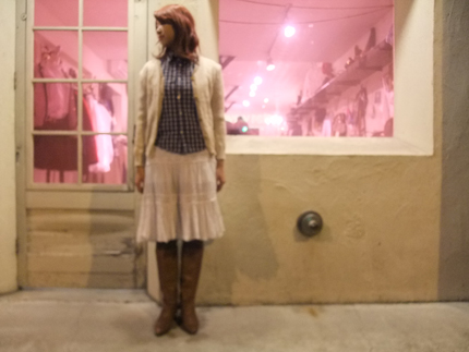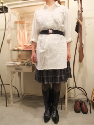 通年使えるシャツワンピですが、スカートをウール素材にするとたちまち季節感がでます*