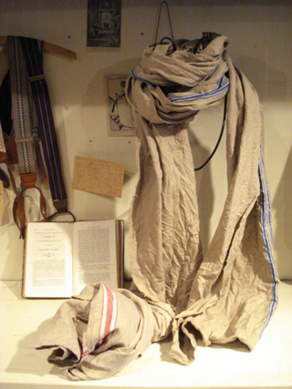 しっかりと張りのあるリネン地のストールは程よいボリュームで巻き易く、この風合いが古い物好きにはたまらない一品。